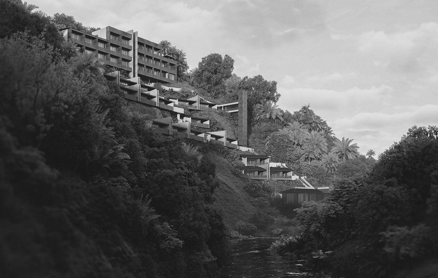 At its core, the concept is rooted in harmony between architecture and nature. The design does not attempt to dominate its surroundings but instead works with them, using minimal forms, earthy tones, and organic materials to create a natural balance. This approach allows the environment to remain the focal point while the architecture enhances its beauty in a subtle and respectful way.